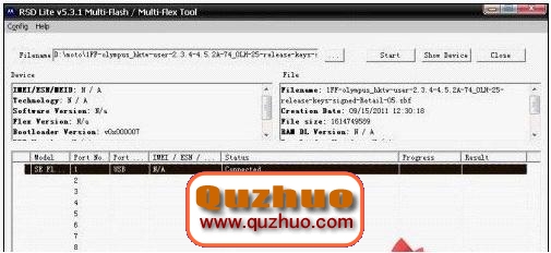 1.打開您下載並且安裝好了的RSD Lite刷機工具,出現以下界面;
