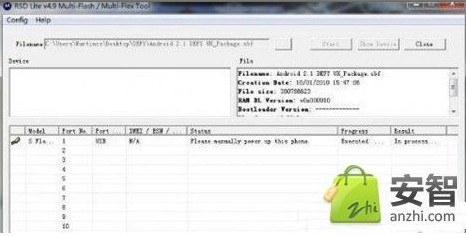然後打開 RSD按上面“選擇”,選擇一個要刷的sbf,然後按開始(star)即刷底包