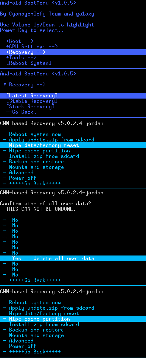 在Recovery菜單一次執行並確認(音量鍵選擇,電源鍵確認)