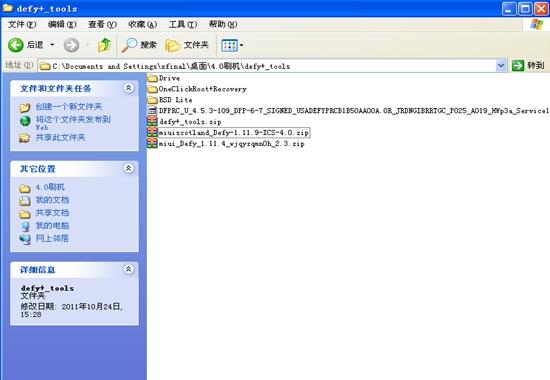 5、下載完成之後只需要將刷機工具包defy+_tools.zip解壓即可,4.0固件包和2.3刷機包只需要放入SD卡根目錄即可。