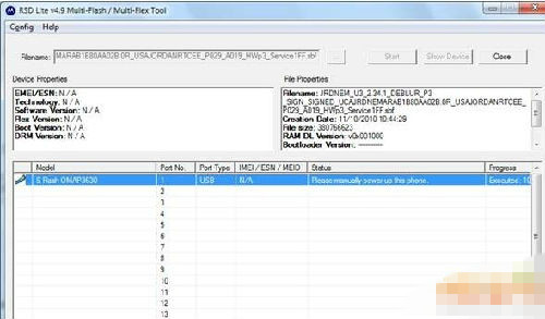 點最上面的按鈕(上圖的紅圈處),選擇一個sbf文件,也就是要刷的rom文件,然後點Start開始刷機。