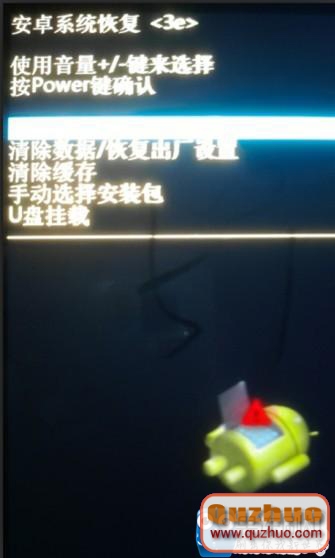 2、將手機完全關機,然後同時按住音量下鍵+開機鍵,進入Recovery模式