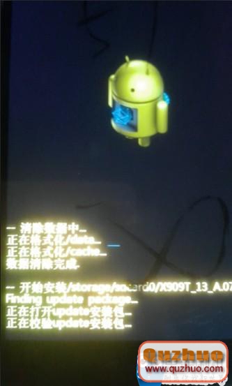 3、進入後,依次選擇「清除數據/恢復出廠設置->手動選擇安裝包->選中X909_13.A.12_OTA_017_all_svn10730.zip」,稍等一會兒即可恢復官方