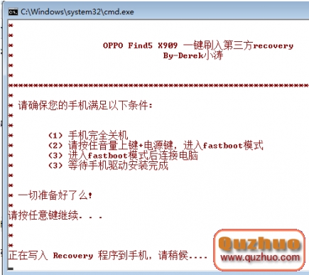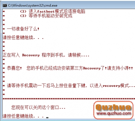 根據提示按任意鍵刷入recovery: