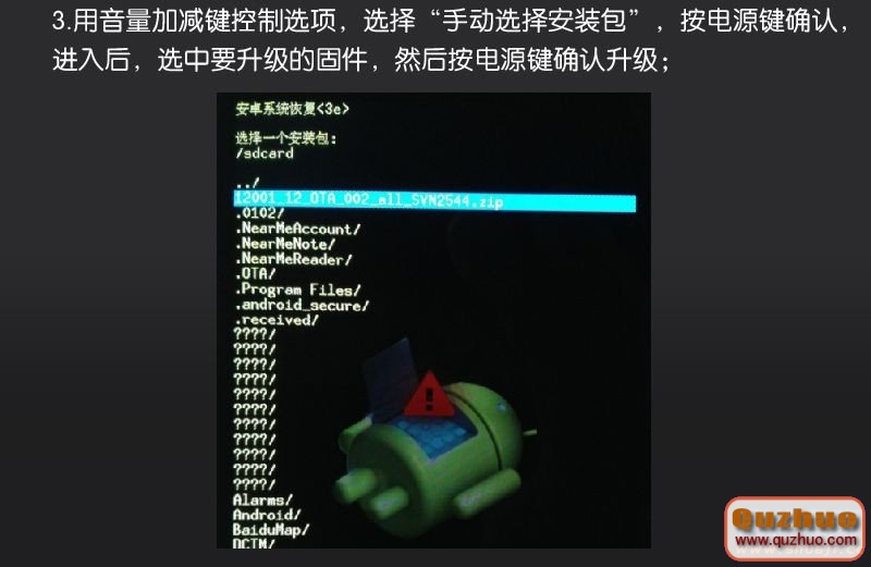1.下載root文件放到手機內置的內存卡的根目錄:點擊下載 2.你的機器要已經刷了的中文recovery,沒有的話先看這裡 進