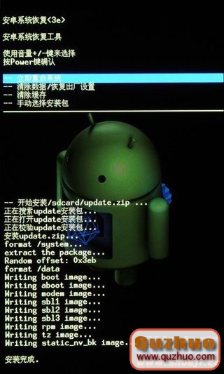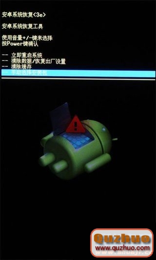 3、使用音量上、下鍵選擇,按電源鍵確認。選擇“手動選擇安裝包”,進入後,選中要升級的固件文件,按電源鍵確認開始升級。
