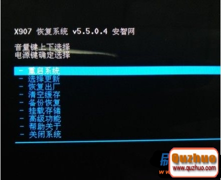 如果出現上面的效果圖就說明recovery刷入成功了。