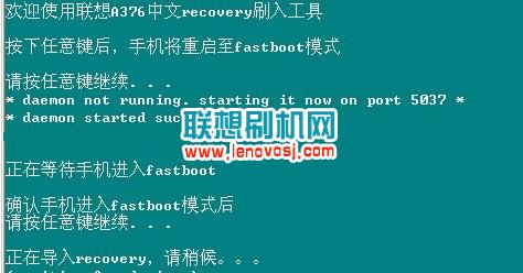 2、解壓下載好的的中文recovery刷入工具,點擊裡面的“Recovery刷入.bat”,並按提示,按任意鍵開始;如下所示: