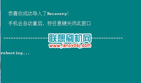 4、刷入時間一般在10秒左右,會提示您recovery刷入成功;然後手機會重啟進入recovery,如下所示: