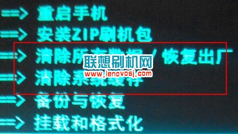 3:用音量鍵選擇【清空所有數據】然後再選擇【是的-清空所有數據】然後按電源鍵確認,返回到recovery主界面,然後用音量鍵選擇【清空緩存數據】,然後再選擇【是的-清空所有緩存】然後按電源鍵確認