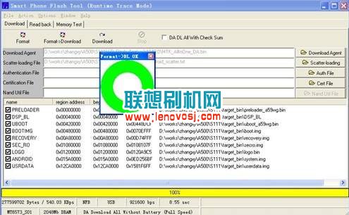 4:刷機時間視您的數據線以及電腦配置而定,請耐心等待,出現下圖界面,代表聯想A789線刷全部完成: