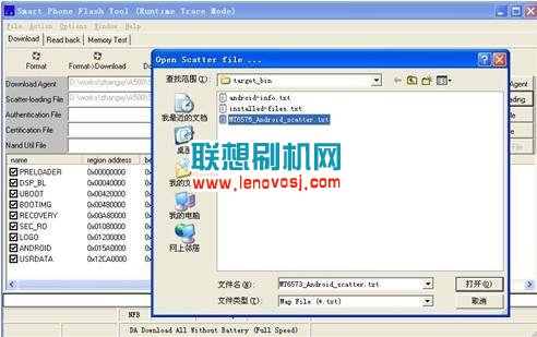 1:解壓線刷包,會得到一個“target_bin”的文件夾,然後再解壓線刷工具,打開文件夾,並運行其中的flash_tools.exe,點擊Scatter-loading按鈕選擇軟件對應的文件:如圖:
