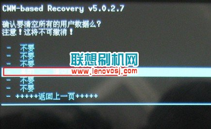 3、選擇中間的兩項,即清空數據和清空緩存,進行雙清,電源是確定,音量鍵是選擇,這個先搞定它,再進入下一步: