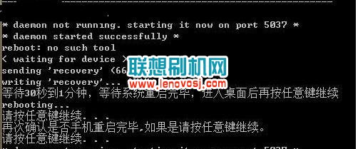 二:打開一鍵工具,運行一鍵刷入REC後,如正常連接並裝好驅動,會有刷寫recovery的提示:(如果沒有驅動的可以到這裡下載>>>>>>>>>)