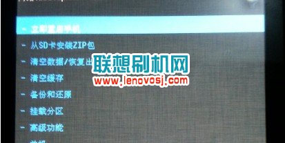 6、完成後進入recovery,方法是手機在關機的狀態下,先按音量+鍵,再按電源鍵,一直到進入recovery界面,中文recovery界面如下,由於是移植A710E的,所以會這樣顯示,不過不影響A600E使用recovery進行卡刷