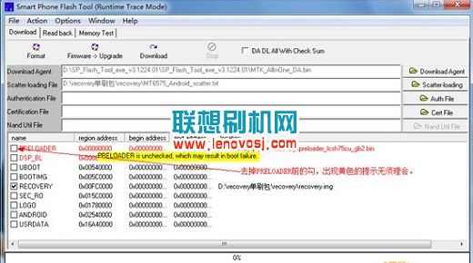 4、再去掉PRELOADER 前的勾,只保留RECOVERY前的勾:如下所示: