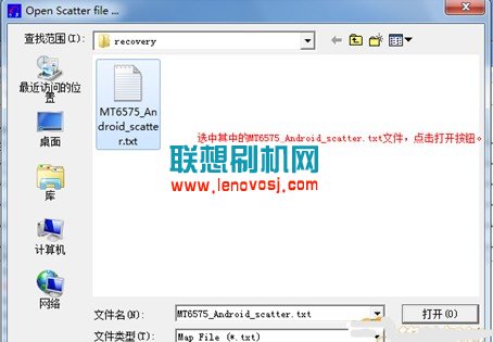 3、然後下載好聯想A690 recovery線刷文件包,點擊下載>>>>>>>>>>> ,解壓後放到桌面上,先點下圖中的Scatter-loading,再將你解壓的線刷文件中的MT6575_Android_scatter.txt文件雙擊,然後確定導入。