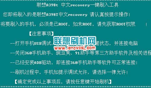 聯想A398T第三方資源確實很少,就第三方recovery來說,想下載一個都難,所以今天安卓刷機網為大家整理了一下A398T的刷機資源,來幫助一下各位機友,希望對大家有所幫助,首先和大家分享的是刷入recovery的教程。本次是把手機連接電腦,進而用電腦上的刷寫工具一鍵刷入的,步驟還是比較簡單的。有需要的可以往下看一看詳細操作方法了: