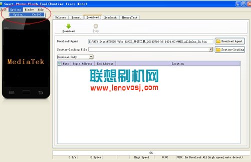 3、跳出“Option”界面:選擇“Download”,勾選“DA DL All with Checksum”如下:
