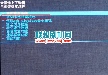 3、重新回到recovery主界面後,選擇“從sd卡選擇刷機包”;再選擇“從SD卡選擇zip刷機包”;