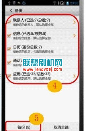 4.勾選需要備份的信息,點擊“備份”,在對話框中點擊“是”,再輸入“備份名稱”,然後點擊“確定”,自動備份完成後點擊“確定”,