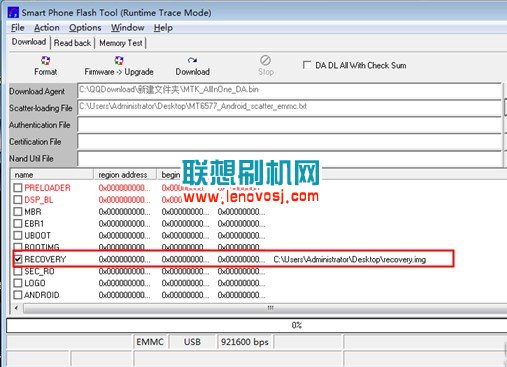 5:選擇好了後。刷機工具會自動勾選下面的recvoery項,其實刷recovery只勾選這一項就可以了!如下圖所示: