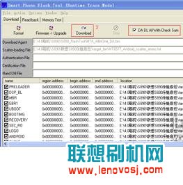 注意:請一定先勾上"DA DL All With Check Sum"並點擊Download再連接手機