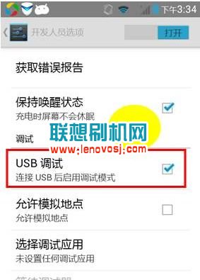 2、打開手機設置中的USB調試選項。具體操作為:點擊手機中的設置----開發者選項----USB調試---打開。