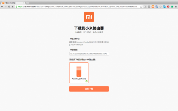 3.在新頁面中可以看到自己綁定的小米路由器,此處為“Xiaomi.LeiPhone”,點擊“立即下載”。