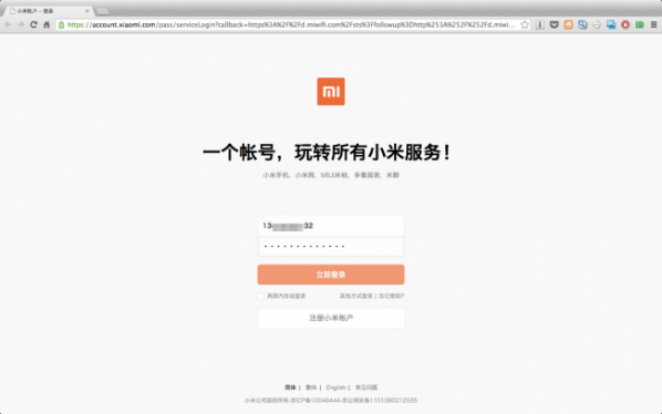 2.在彈出的頁面中登陸自己的小米賬號。(去注冊)