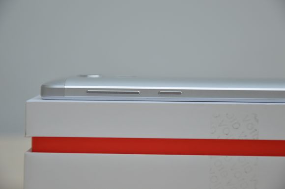 同樣的,奇酷青春版把所有按鍵放到了機身右側,這也使得左側邊框除了兩個卡槽開孔之外,再無其他元素,這在完整性上加了不少分。按鍵位置設計合理,鍵程適中,反饋良好。