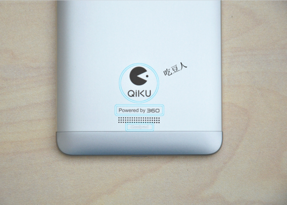 網上盛傳的奇酷手機LOGO,是一個經典的“吃豆人”形象。由於360是基於安卓深度定制,底部標有“Powered by 360 ”。依次往下,我們能夠看到很小但很清晰的“Coolpad”LOGO,這說明兩家公司的合作關系是非常緊密的。