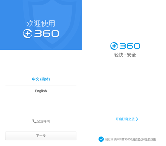 初次開機,是大家非常熟悉的開機引導界面,有點兒類似iPhone的激活界面,簡單操作5步之後,就進入360OS桌面。