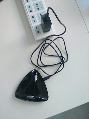 1.插上紅外發射器的電源,此時藍色的Wi-Fi指示燈會閃爍3下,代表等待接入。也可以接到電腦的USB接口,實測可以正常使用。
