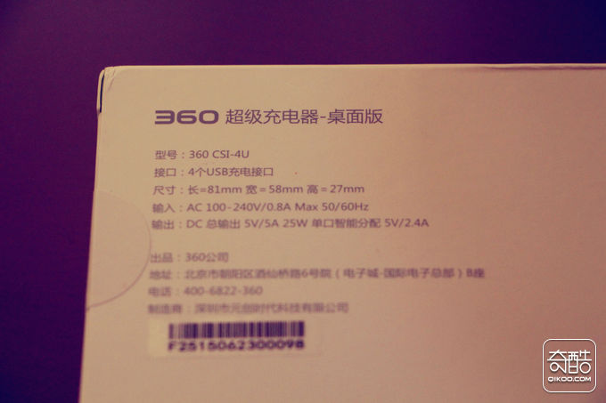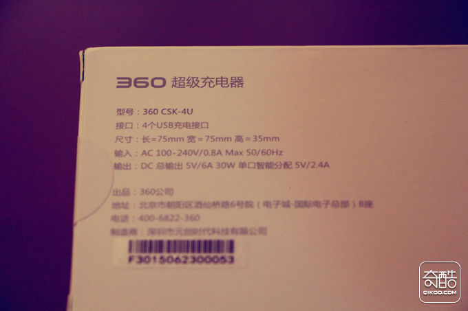360超級充電器旅行版的標識注明DC總輸出5V/6A 30W 單口智能分配5V/2.4A,實際測試下來