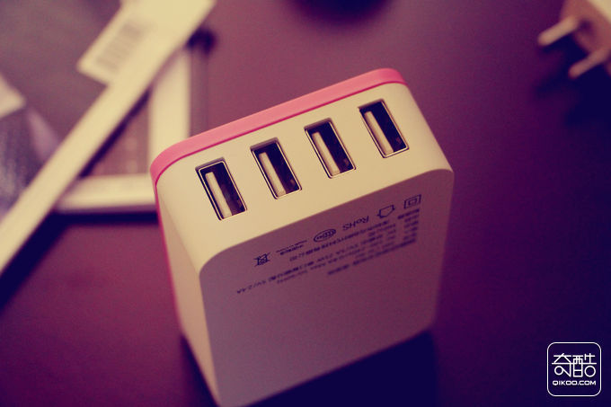 這裡的四個充電口並沒有其他標識,不像有的產品會標注不同的充電口可能會有不同的電壓,所以我們在使用360超級充電器的時候不必在意充電口電壓的選擇。因為它是全智能識別的,這一點在宣傳軟文中也已經提到,對於懶人和小白來說這是最簡單的。