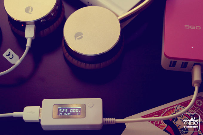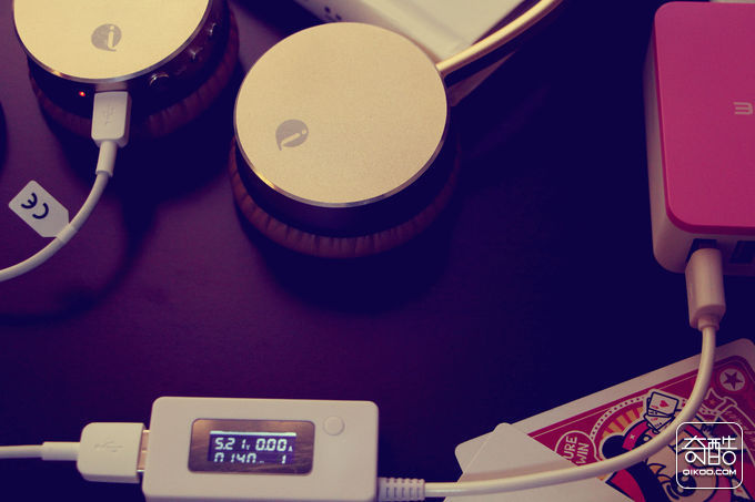 360超級充電器的標識上注明DC總輸出5V/5A 25W 單口智能分配5V/2.4A,實際測試下來四個接口給iLKE Speed metal充電的電壓穩定在5.2上下,電流很低幾乎監測不到,這裡因為耳機的電是滿的,所以拍攝的時候電流幾乎是零狀態,充滿電自動斷電保護真心做的很不錯。