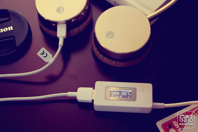 為了驗證超級充電器的智能調節,我換用iLKE Speed metal 耳機做再一次測試,上圖是普通充電器的充電結果。電壓5.09,電流0.07,這裡因為耳機的電是滿的,所以拍攝的時候電流幾乎是零狀態,充滿電自動斷電保護真心做的很不錯。