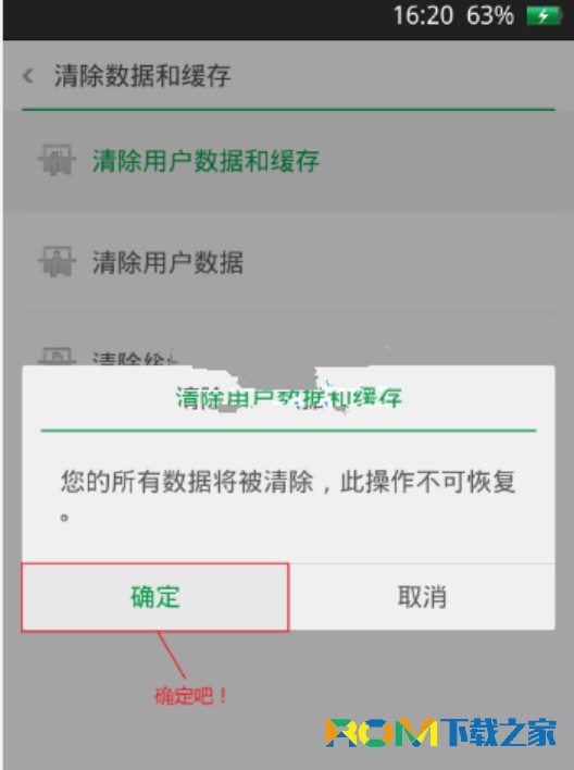 4:然後選擇【清除數據和緩存】,點擊 【清除用戶數據和緩存】直到完成