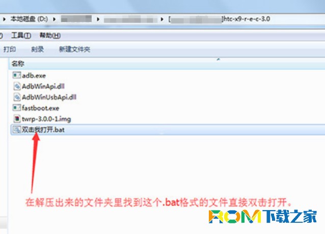 3:然後把上面下載下來的recovery工具包在電腦上進行解壓,解壓出來一個文件夾,然後在文件夾裡找到【雙擊我打開.bat】文件直接雙擊打開,然後把這個命令復制粘貼進去: fastboot flash recovery twrp-3.0.0-1.img 接著接回車鍵即可。