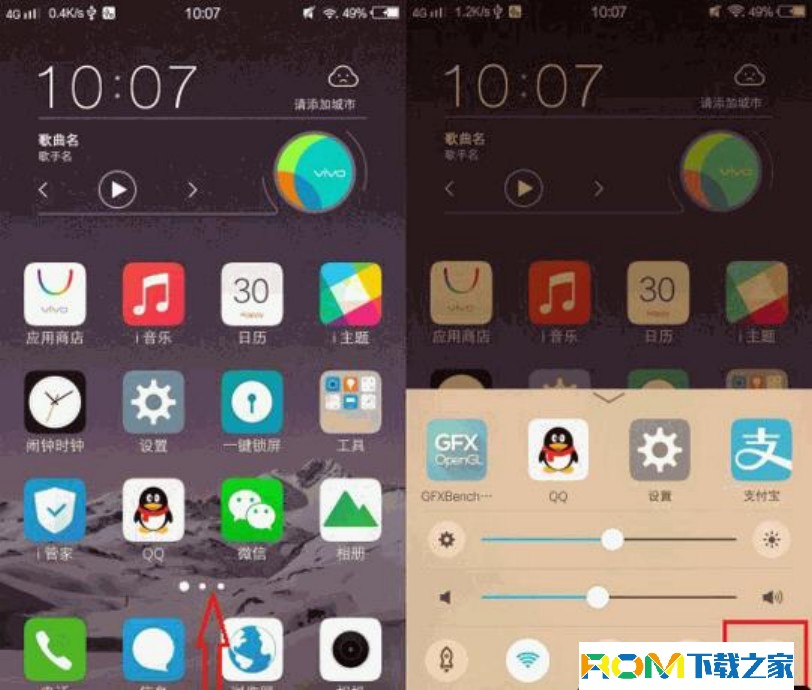 從vivo x7 Plus左面底部向上滑動屏幕,這樣就可以引出底部快捷操作菜單,這樣【全局護眼】功能點擊即可開啟。