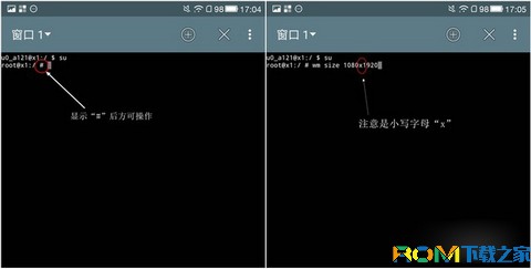 輸入代碼“wm size 1080x1920”