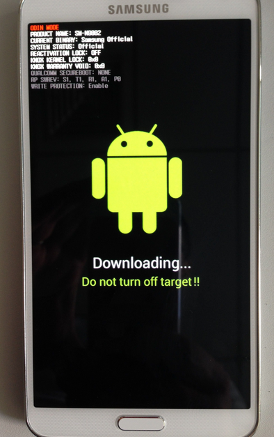 1:手機先完全的關機,然後同時按住下音量下鍵 + HOME鍵 + 電源鍵,等待3秒,出現英文界面