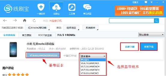 3. 根據需要,選擇相應的基帶版本,選擇百度網盤或本地下載。