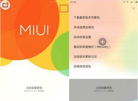 較老版本的 MIUI 可通過刷 MIUI V5 / MIUI 6 最新完整包快速升級(方法:小米手機可通過系統更新 - Menu - 選擇安裝包進行升級,第三方機型需手動進入 Recovery 選擇完整包進行升級)