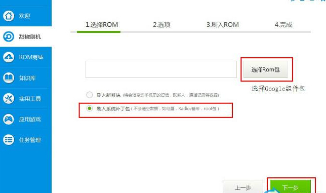 切勿選擇“刷入新系統”,否則手機會先恢復出廠設置,再刷入google服務包即可。