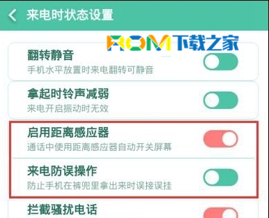 5、我們可以看到系統默認開啟了距離感應器,點擊右側的開關進行關閉,然後再嘗試一下通話,是否還出現黑屏的現象。