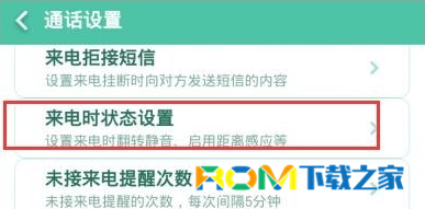 4、這時在通話設置頁面當中,打開來電時狀態設置。
