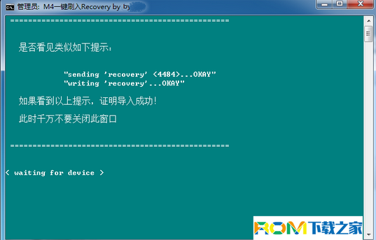 2、按照打開的DOS窗口提示刷入第三方Recovery