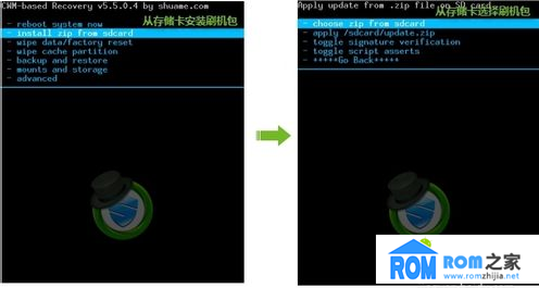 - install zip from sdcard從存儲卡安裝刷機包-choose zip from sdcard從存儲卡選擇刷機包